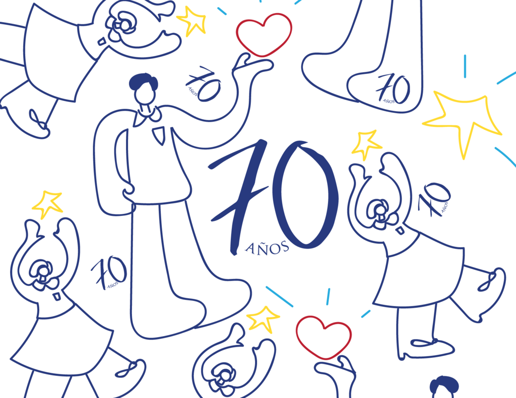 In his work, Guillermo Belchez meaningfully reinterpreted the number "80"; the "8" is transformed into the symbol of infinity (∞), represented by the intertwined hands of a man and a woman that evoke continuity and collaboration, which in turn pay homage to the commitment to gender equality and human solidarity as pillars of peace. Beside it, the number "0" takes the form of the planet, declaring a clear mission: infinite human support for our world.